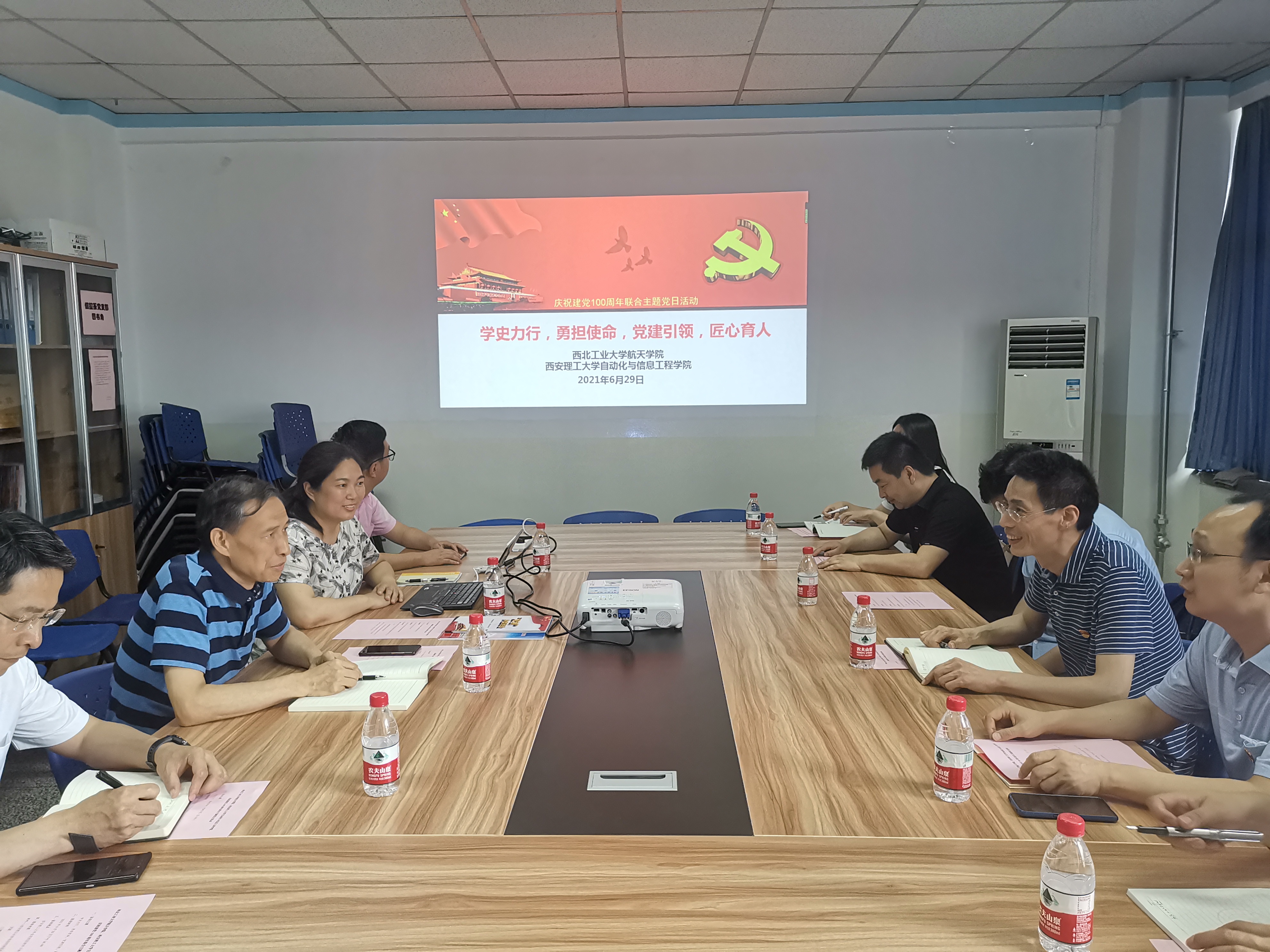 在建党100周年之际,为扎实做好“办实事”“开新局”,提升3003新葡的京集团全国党建工作“标杆院系”、飞行控制研究所全国党建工作“样板支部”和无人系统与控制研究所高校“双带头人”教师党支部书记工作室的创建成效, 2021年6月29日,3003新葡的京集团党委书记高光良、党委委员凡永华、郭建国带领支部书记王靖宇、朱国强、闫晓东、组织员以及支部委员和学生辅导员代表等,前往西安理工大学全国党建工作标杆院系土木建筑工程学院、全国党建工作样板支部自动化与信息工程学院信息与控制工程系教工党支部开展主题党日活动,进行学习调研、交流创建经验。