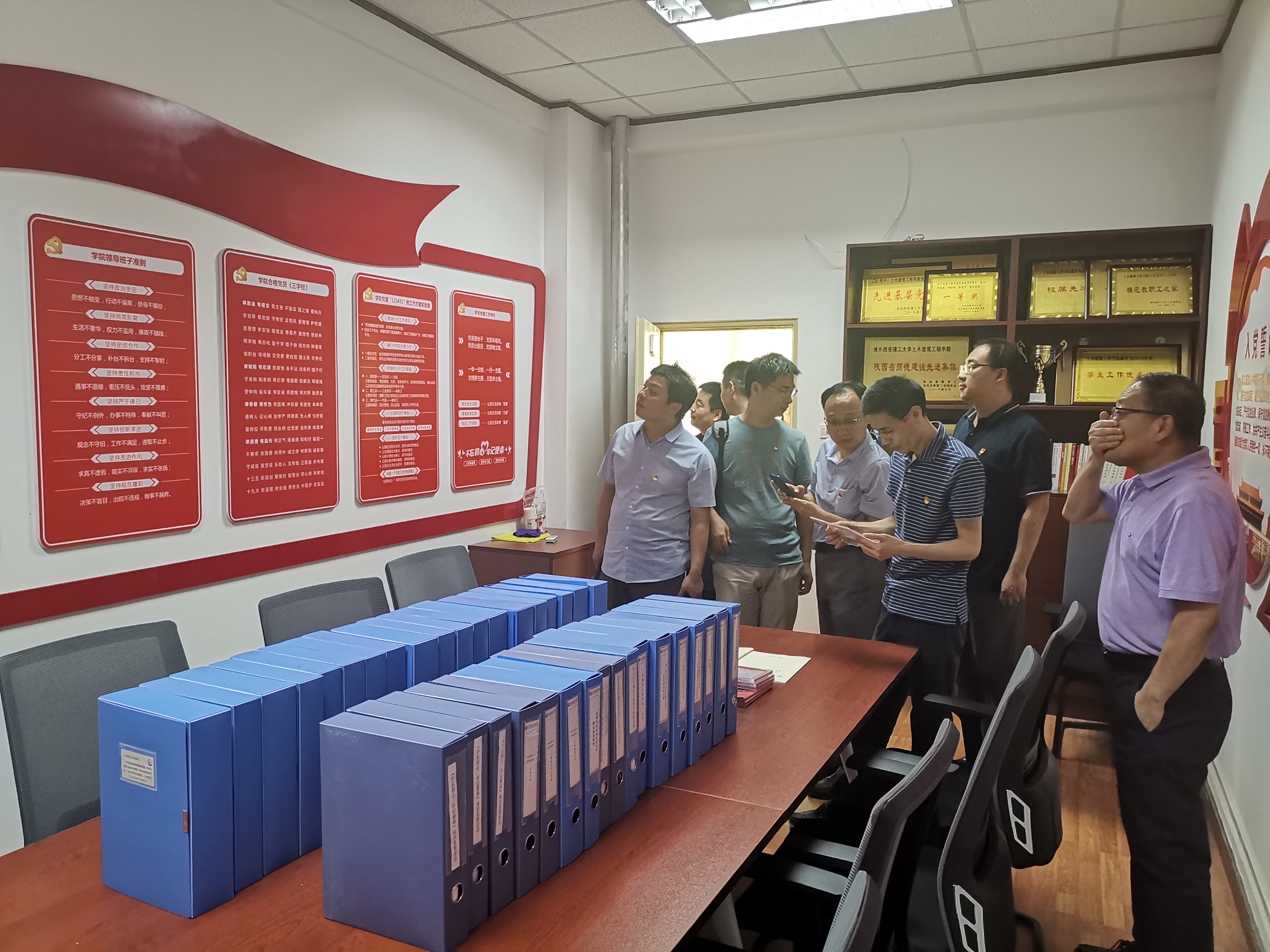 首先,土木建筑工程学院党委书记王青耀介绍了创建过程,以及在典型案例与经验、制度建设、三育人模式等方面获得的成果,同时双方围绕创建目标、创建过程和创建经验等进行了广泛深入地交流,并就新时代下加强教书育人、三育人、课程思政等工作进行了研讨座谈。之后,高光良等参观党建文化活动室、文化长廊、文化墙、工作室等场所。