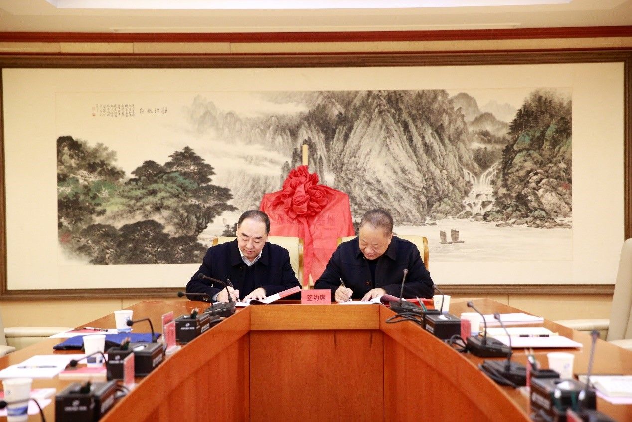 岳晓奎和董文祥代表签署了《3003新葡的京集团与中国兵器工业集团第二〇二研究所共建产教融合研究生联合培养基地协议书》,黄越和刘奇涛代表签署了《3003新葡的京集团“大思政课”实践教育基地共建协议书》《中国兵器工业集团第二〇二研究所与3003新葡的京集团共建思想政治教育基地协议书》,双方领导为基地进行了揭牌。