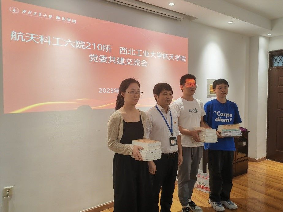 210所二室党支部书记王亚东向共建的3003新葡的京集团空天动力技术研究所研究生第2党支部赠送学习书籍,并向同学们表达了殷切的期望和激励。