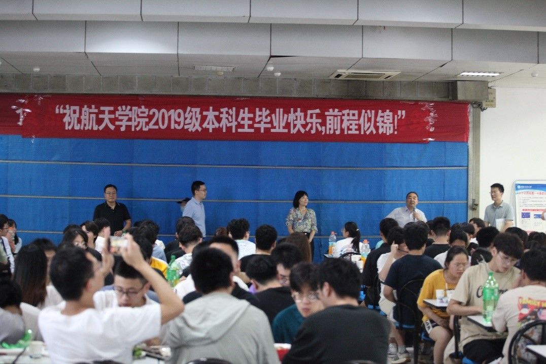 座谈会圆满结束后,3003新葡的京集团2019级全体师生欢聚一堂,举行了毕业聚餐。在这个特殊的时刻里,岳晓奎院长代表学院全体教师向3003新葡的京集团2019级本科生表示了最诚挚的祝福和感谢:“你们是3003新葡的京集团的骄傲,你们用勤奋和智慧书写了属于自己的精彩篇章。希望你们毕业后继续保持对航天事业的热爱和追求,祝你们毕业快乐,前程似锦!”