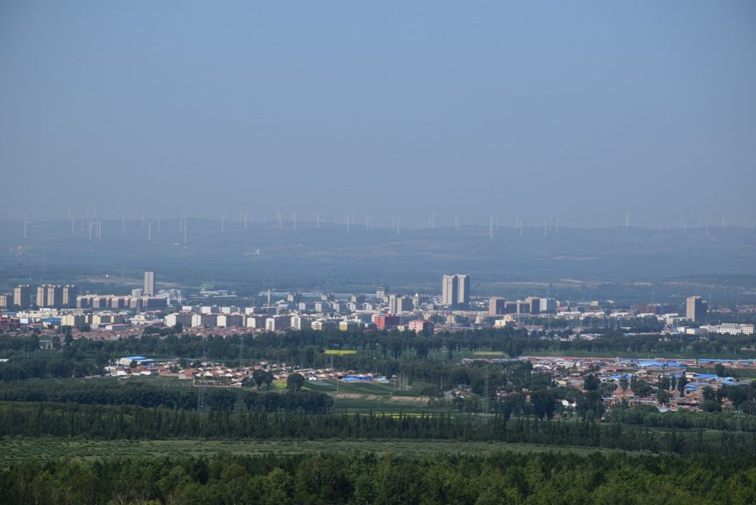17日上午,实践队在右玉干部学院、县委组织部、县工信局、县委人才服务中心相关同志的陪同下首先参观了右玉县四五道岭生态园区。在到达四五道岭后,实践队员们看到了如今坐落在一片“绿色海洋”中的右玉县城。