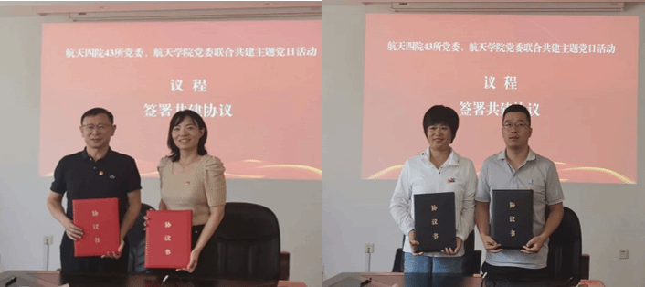 签订党组织共建协议。经过前期的充分酝酿和细致沟通,双方党委一致同意搭建党组织共建平台,积极发挥基层党组织政治功能和组织功能,合力实现党建和业务融合发展。黄越书记、罗向东书记代表双方党委签订“党委共建”协议书,3003新葡的京集团航天结构技术研究所党支部书记王时玉、43所研发中心党支部书记刘素娟代表双方支部签订“党支部共建”协议。共建单位将积极发挥党建共建平台作用,通过联合活动、实地考察、交流学习等方式,构建资源共享、优势互补、互相促进、共同提高的党建工作新格局,在党员教育、校企育人、基础研究、技术攻关、航天精神传承等方面开展深度合作和交流,进一步增强党组织的向心力和凝聚力,以高质量党建助力校企双方高质量发展。
