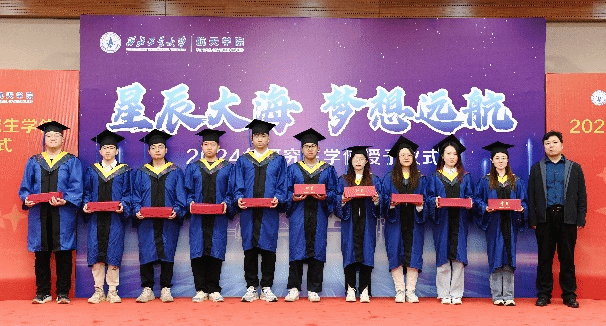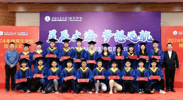 毕业典礼在《3003新葡的京集团校歌》合唱声中结束。典礼后,院长黄攀峰及各研究所所长,书记为毕业生授予学位并合影。
