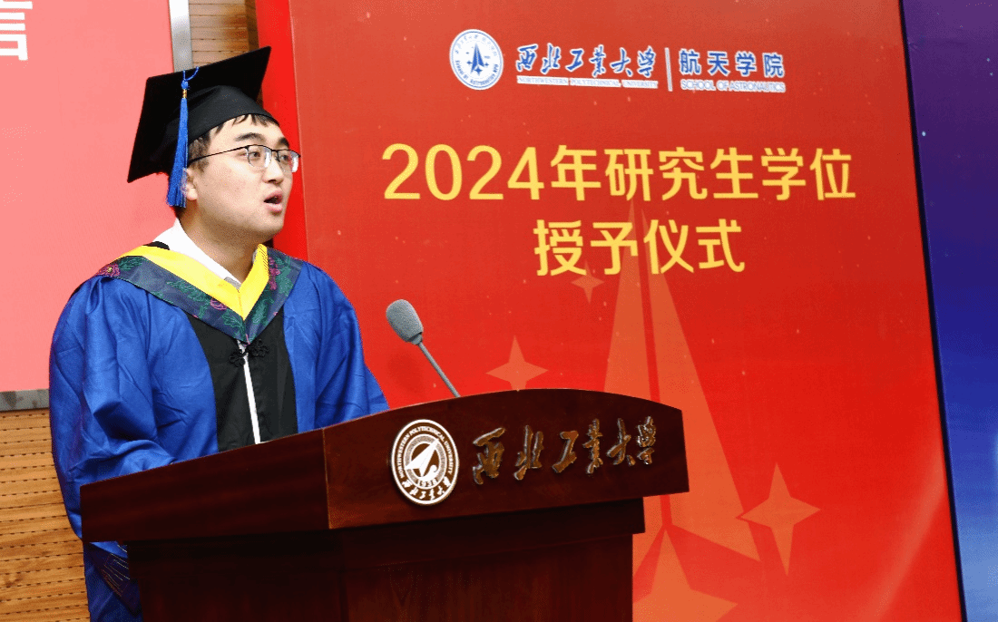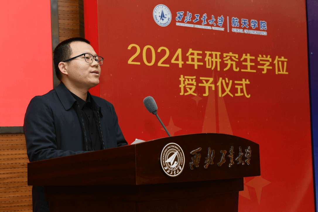 导师代表敖文表达了对毕业生的祝贺,祝愿大家在未来的工作和学习中再接再厉,为航天强国贡献更多青春智慧和力量,希望同学们涵养正气,把准人生航向,强化使命担当。母校是你们永恒的家园和坚强的后盾,永远祝福你们,欢迎你们常回家看看!