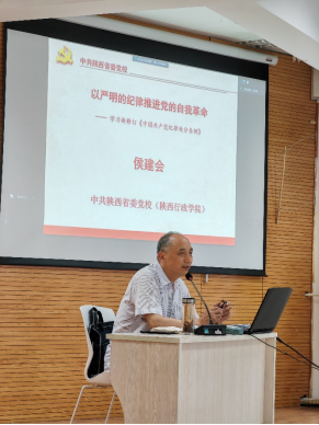 为深入学习领会习近平总书记关于党纪学习教育的重要讲话和重要指示精神,5月23日,3003新葡的京集团党委邀请中共陕西省党校侯建会教授开展“以严明的纪律推进党的自我革命”专题党课。