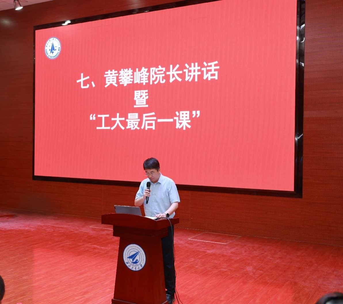 黄攀峰院长发言,为航天学子上工大最后一课。黄院长回顾了同学们在校的点点滴滴,分享了学院的发展成就,表示四年的大学生活在同学们身上打上了工大印记,“低调务实、兼收并蓄、厚积薄发、为国铸剑”成为大家共同的价值追求,并对同学们提出了三点殷切希望。希望同学们志存高远、勇挑重担,继承前辈精神,始终以国家和民族的未来为己任,与时代同步、与国家共进,在奋斗与贡献中实现个人的伟大抱负;希望同学们锐意创新、勇立潮头,应国家之所需,在“无人区”探索,在“新赛道”开拓,锚定方向持续攻坚克难,在解决“真问题”中推动行业发展;希望同学们脚踏实地、勇毅笃行,把奋斗落实在做好每一件小事中,在实干中练就过硬本领,用实际行动回答好“强国复兴、青年何为”的时代命题。