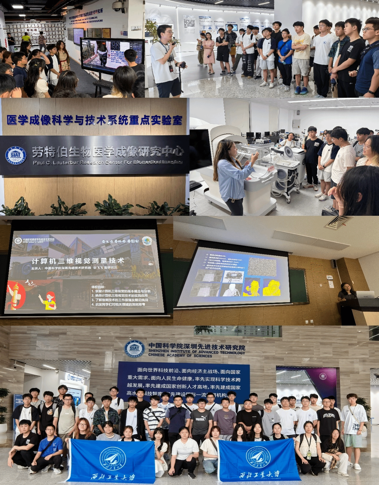 中国科学院深圳先进技术研究院学术交流。在深圳先进院的老师与学生的带领下,同学们参观了深圳先进院的两个重点实验室,了解了外骨骼的发展与现况,并体验了深圳先进院自己研发的外骨骼产品,将科幻带进现实,丰富了同学们的见识;同学们也了解了如今先进医疗产品的功能以及使用原理,丰富理论知识,拓宽了同学们的思维;最后由谷飞飞老师以“计算机三维视觉测量技术”为主题的报告结尾,向同学们介绍了一些三维视觉测量技术与具体的成像算法,丰富了同学们的专业知识,拓宽了同学们的创新思维,激发了同学们对于三维视觉领域的兴趣。