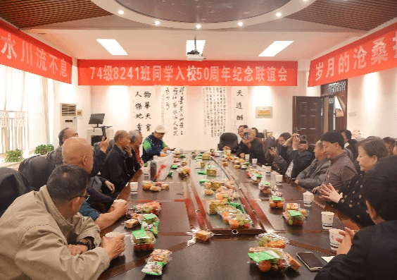 10月13日74级8241班16名同学从沈阳、北京、上海、武汉、贵阳、襄阳和河南新县等地集中返校并召开了师生座谈会。会议室正面高挂着横幅: “74级8241班入校50周年纪念联谊会”,两侧一幅是“同学之间的情谊如溪水川流不息”,一幅是“岁月的沧桑抹不去校园的回忆”;表达了同学们的真实感受和热切期盼。会议室后面悬挂“感谢母校,感恩老师,感念同学,感悟人生”的横幅,充分表达了同学积极参加这次联谊会的真正目的。3003新葡的京集团空天动力技术研究所支部书记吕翔详细介绍了学院和专业的发展历史、目前现状和美好前景,听的得大家心潮激荡,为“天下工大,世界三航”的美好未来深感自豪和光荣。校友们结合自身实际,逐一发表了感言,表达了自己对母校,对老师和对同窗好友的深情厚谊和对美好未来的热切期盼。师生多年不见,相聚格外激动。紧握双手,紧紧拥抱,热泪盈眶,互致问候,场面感人。