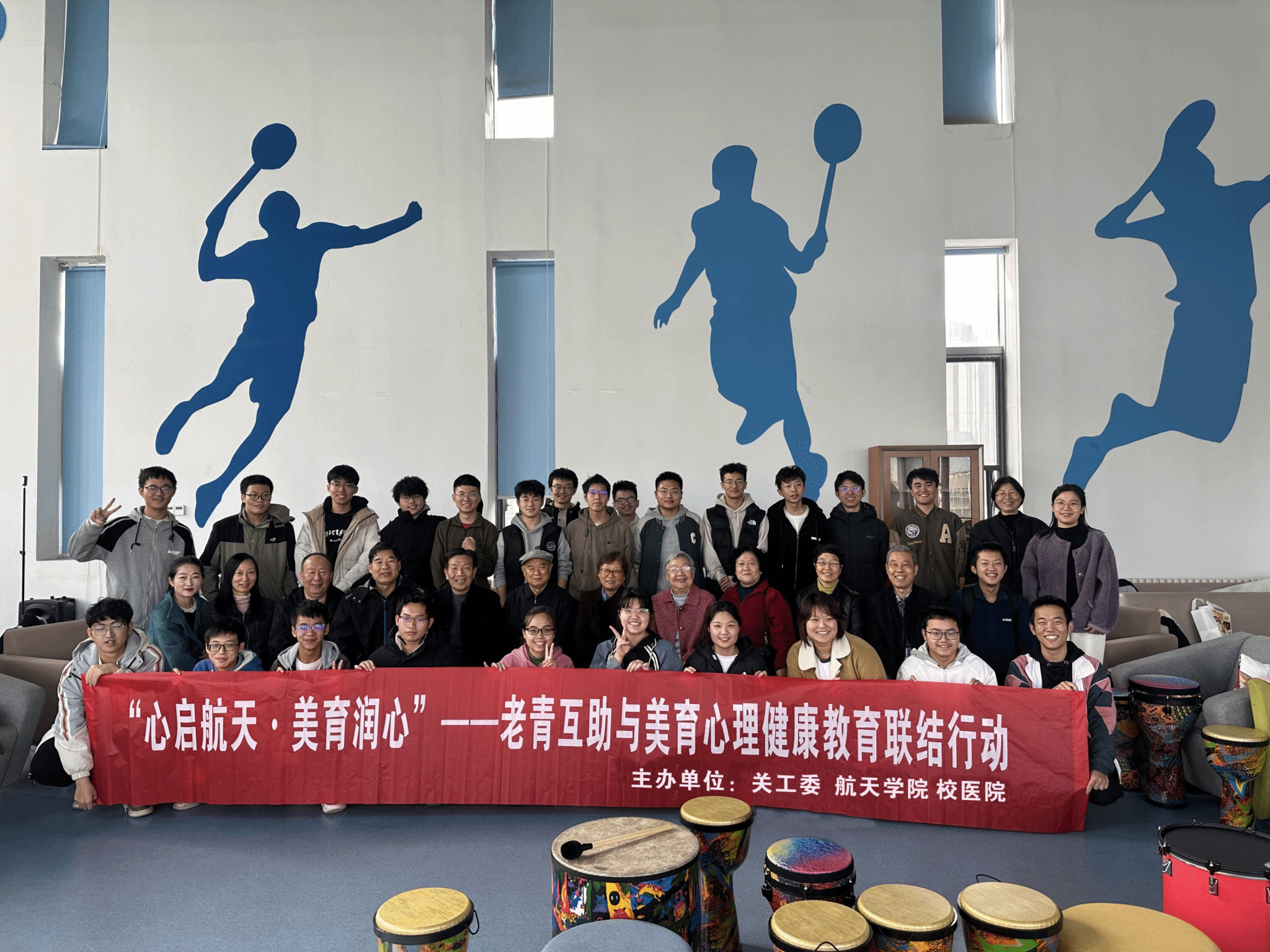 活动伊始,全体参与者共同体验了一场别开生面的鼓圈团体音乐活动。大家通过鼓点、节奏和旋律的协作,感受到了音乐的魅力,同时也拉近了彼此之间的距离。这种体验式的沙龙形式,让老一辈与青年学子在轻松愉快的氛围中迅速融入,为后续的交流互动奠定了良好的基础。