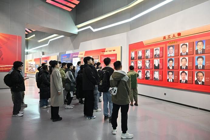在第一展厅,讲解员详细介绍了人民兵工精神的发展历程。从我党领导的第一个兵工厂的建立,到现代化武器的研制,人民兵工从无到有、从小到大的光辉历程,让师生们深刻感受到了兵工事业的艰辛与伟大。通过四个历史时期,人民兵工从星星之火到钢铁洪流的发展历程,让师生们对兵工精神有了更深刻的理解。
