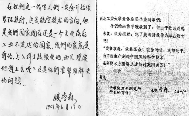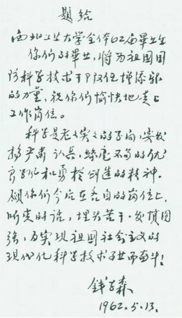 图|1962年钱学森给西工大毕业生的寄语