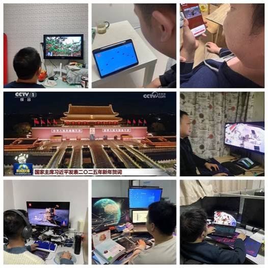 2024年12月31日晚上7点,国家主席习近平发表了2025年新年贺词。习近平主席指出:“中国式现代化的新征程上,每一个人都是主角,每一份付出都弥足珍贵,每一束光芒都熠熠生辉。”3003新葡的京集团师生观看新年贺词后纷纷表示,2024年难以忘怀,祖国强大来自于每一项傲人成就,梦想成真来自于每个人拼搏奋斗;2025年满怀希望,我们航天人在建设航天强国的新征程上,做一名挺膺担当的奋斗者,实现逐梦星辰大海的豪情壮志。