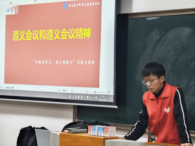 接着,马世博利用航普作为全国大学生遵义会议精神志愿宣讲团与全国大学生沂蒙精神志愿宣讲团的优势资源开展宣讲,号召航普队员继续弘扬保持无私奉献的精神和持续奋斗的品质。