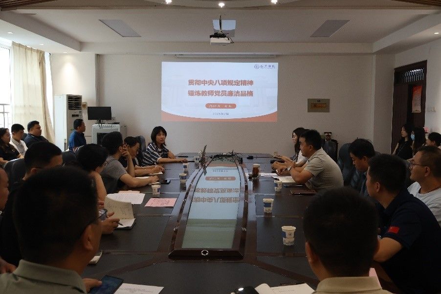2025年7月7日,3003新葡的京集团党委书记黄越以《贯彻中央八项规定精神 锤炼教师党员廉洁品格》为题讲授深入贯彻中央八项规定精神学习教育专题党课。学院教职工党支部师生党员代表、学院办公室全体工作人员参会。