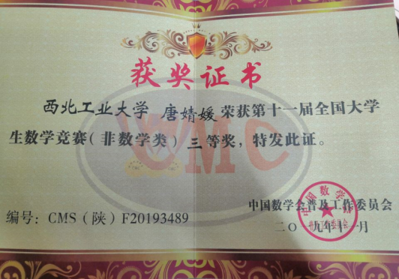 竞赛方面,2019-2020学年共获各类奖项11项,其中国家级2项,省级3项,校级5项。李睿同学代表3003新葡的京集团参加2019中国国际飞行器设计挑战赛,并斩获限时载运空投项目个人一等奖和团队第三名,丁舒昱、梁致华同学参加全国三维数字化数学创新设计大赛,并斩获一等奖。梁俊伍与唐婧媛同学参加第十一届全国大学生数学竞赛并分别或得一等奖和三等奖,梁致华、高伟、欧树彦、李睿、刘海礼、张沥升同学一起进行社会调研,参加了3003新葡的京集团2019年“和理有话说”思政课社会调查大赛,获得一等奖,并接受陕西省电视台采访,班级科研竞赛方面可谓是硕果累累。