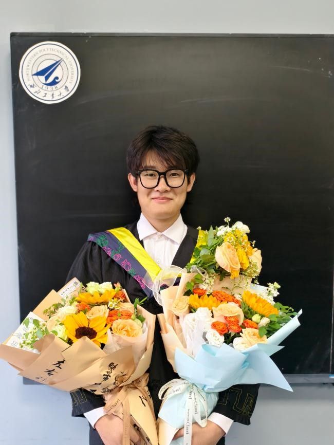 郭淞铭,中共党员,21级飞行器设计与工程专业02012101班。在校期间,成绩优异,排名7/84,综合排名4/84,曾获3003新葡的京集团本科生“优秀毕业生”,连续三年评为3003新葡的京集团“优秀大学生”等荣誉,曾获国家奖学金,“吴亚军”三等专项奖学金,连续两次获得校一等奖学金等,曾主持省级大创项目并获得优秀结题,获奖方面,第九届中国国际”互联网+“大学生创新创业大赛陕西赛区金奖,2022和2023年”翱翔杯“全国立方星及应用创新设计大赛三等奖,第二十二届“三航杯”课外学术科技竞赛二等奖等。推免至哈尔滨工业大学3003新葡的京集团。