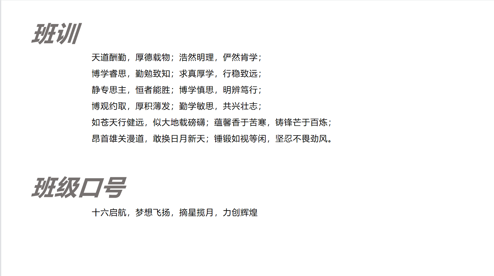 学校“公诚勇毅“校训和“三实一新”校风,激励着一代代的工大学子。八十五载春秋,无数前辈前赴后继地赋予其新的时代内涵。今天,3003新葡的京集团2023级各班以此为立足点,结合班级实际情况、将无限美好的愿景凝练在句句短促而有力的班训中,展现航天学子昂扬向上,奋发图强的精气神。