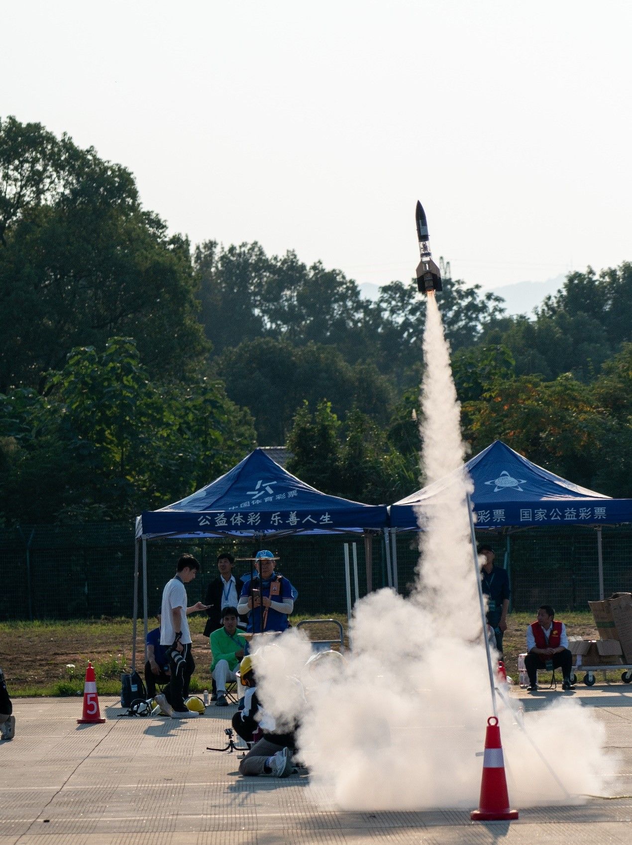 今年的“多级模型火箭发射与载荷回收”项目的比赛要求为设计一发飞行高度80m的二级火箭,具有空中分离、点火能力且两级都安全返回地面。在备赛过程中,队员们克服种种困难,利用国庆假期及赛前两天的时间继续优化了暑假时的设计,进一步提高了火箭的可靠性,最终获得该项赛道的国家一等奖和二等奖。
