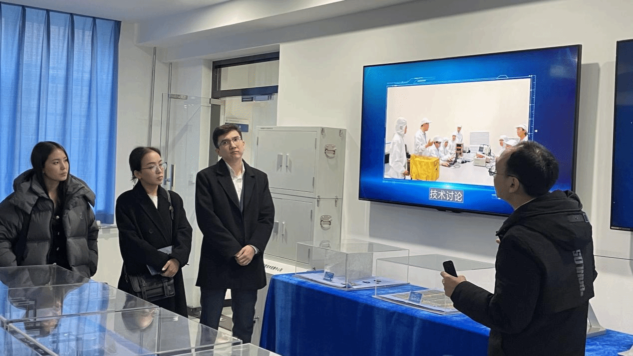 郭建国教授带领调研团一行参观了3003新葡的京集团6号楼二层卫星展厅,并向Nurzada Beissen主任汇报了微小卫星技术及应用国家地方联合工程实验室发展情况和翱翔系列卫星、澳门科学卫星的研制和在轨工作情况,并对实验室在重大原创科研和关键技术攻关等方面取得的成果进行了详细汇报。