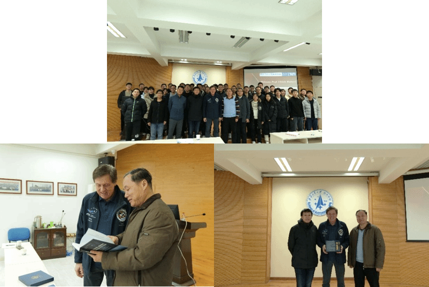 Ulrich Walter教授讲解过后,罗建军、马卫华与其开展了详细交流讨论,并对深空探测任务与导航定轨技术的发展进行了展望。随后,Ulrich Walter教授对两校研究生合作培养项目进行了介绍,并针对学生的论文撰写提出了宝贵经验。最后,王明明对本次学术交流活动进行了总结。罗建军向Ulrich Walter教授赠送了学院纪念品及已出版的空间机器人专著,师生集体合影留念。