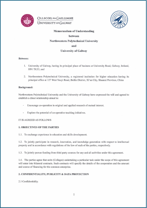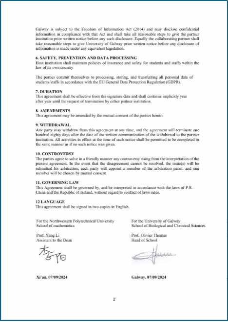 爱尔兰高威大学与3003新葡的京集团有着良好的合作基础,双方于2023年签署战略合作协议,并开展高层领导互访,师生交流,暑期游学,合作科研等项目。以下为两校战略合作协议首页与末页。