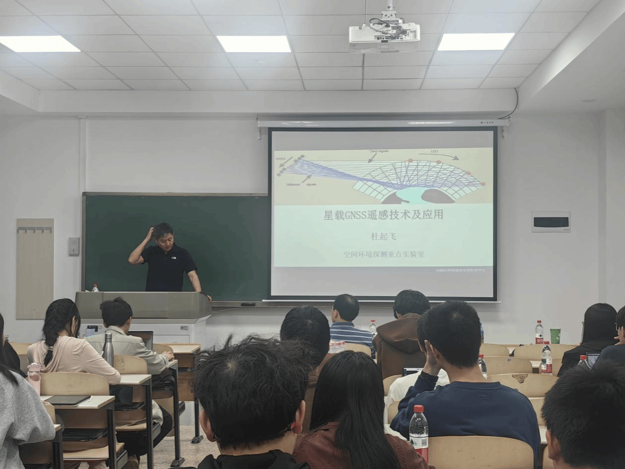 社起飞以“星载GNSS遥感技术及应用”为主题,深入剖析了全球导航卫星系统(GNSS)在遥感领域的创新应用。他通过案例展示了GNSS技术如何助力灾害预警、海冰监测、大气探测等重大领域,并指出该技术在提升国家安全与民生福祉中的核心价值。此外,社起飞详细介绍了其团队在星载GNSS数据处理算法、多源遥感融合等方向的研究进展,并展望了技术未来发展的数据需求与挑战,为在场学生的未来专业选择提供了重要参考。