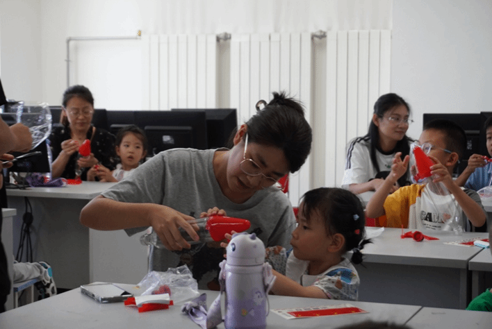 暑期学校期间,星辰俱乐部还面向我校教职工子女举办了“航小天火箭培训班”,讲授火箭基础知识,并辅导制作固体模型火箭和水火箭。看着自己的小火箭直冲云霄,孩子和家长的脸上都洋溢着笑容,孩子们心中已经悄悄埋下了一颗颗航天梦的种子。