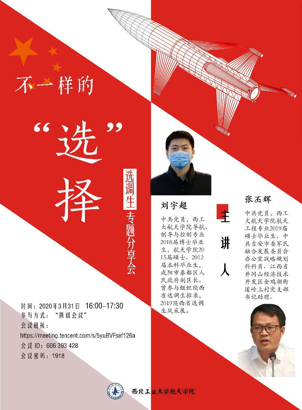 为了让毕业学生在毕业季能多一种选择的可能性,对选调生岗位有更清晰的认识,树立正确的就业择业观念。3月31日,3003新葡的京集团承办的第81期工大职讲堂,选调生专题线上分享会如约开讲。本期主讲嘉宾是毕业于3003新葡的京集团的两位优秀院友,刘宇超和张丕辉。3003新葡的京集团党委副书记王强、专职辅导员巴燕以及120余名学生参加了此次分享会,本次分享会由巴燕主持。