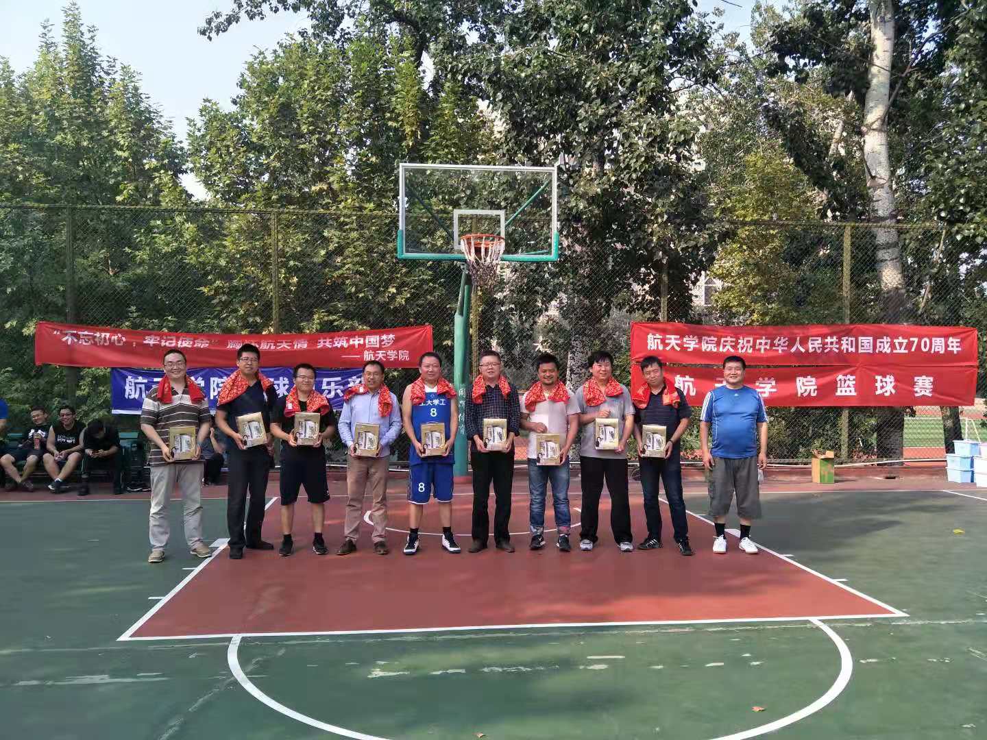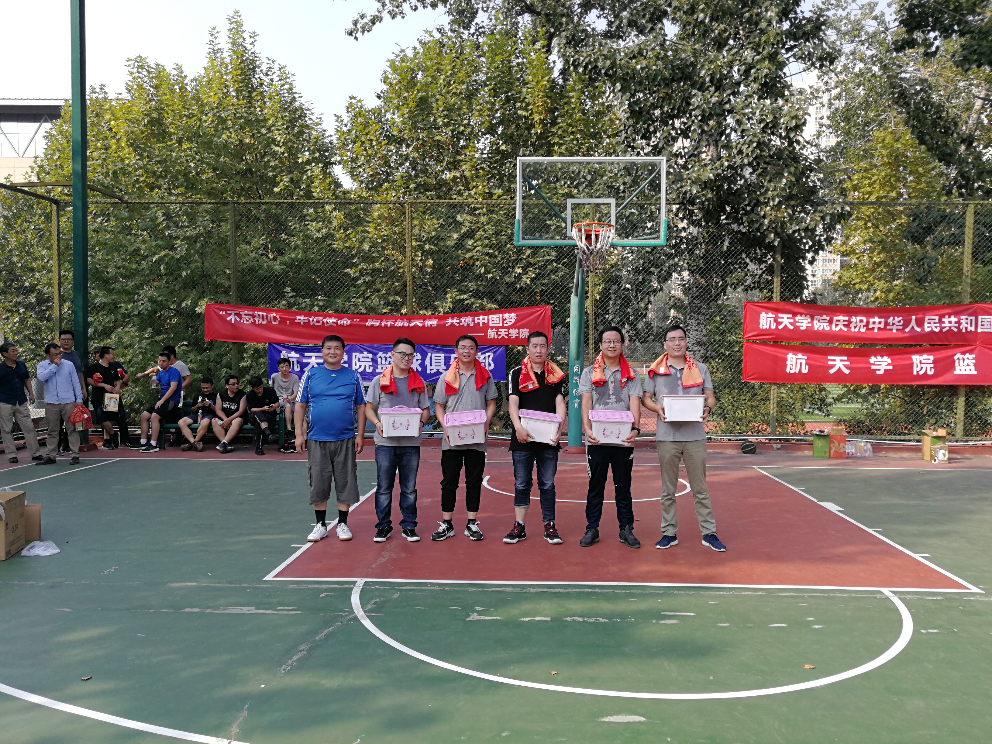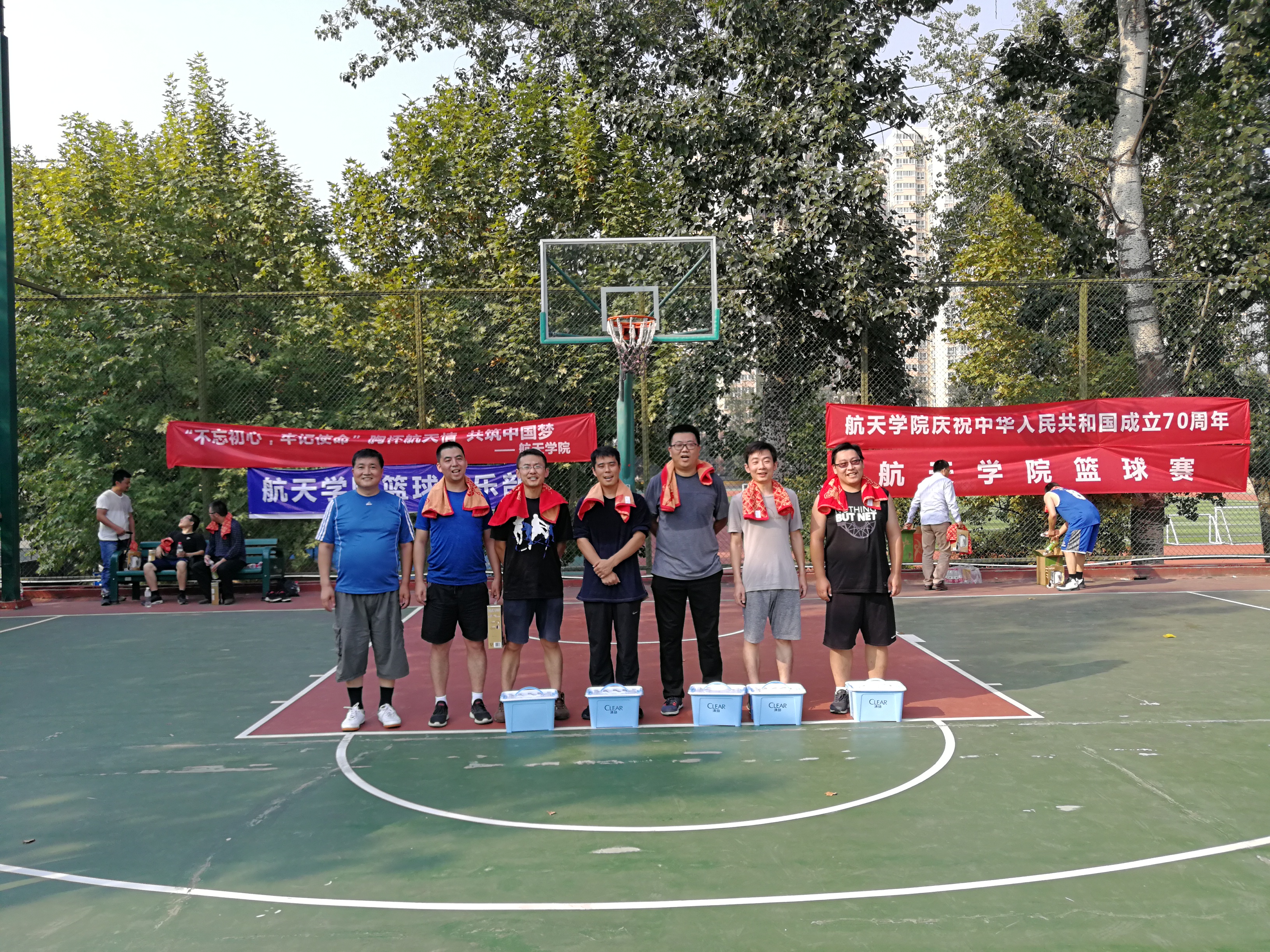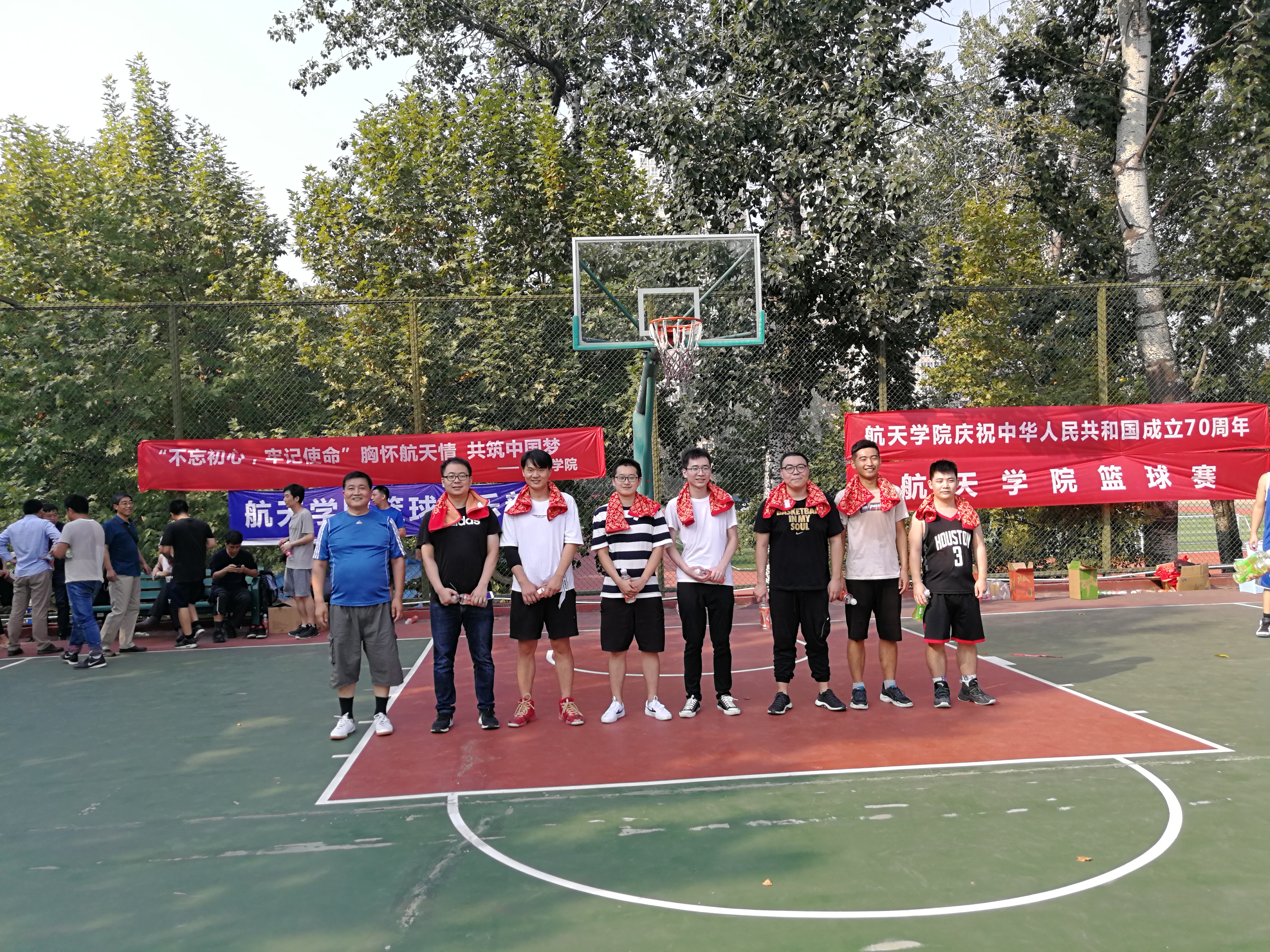 3003新葡的京集团为庆祝新中国成立七十周年,经过3003新葡的京集团工会多日的筹划和准备,于2019年9月30日在友谊校区篮球场圆满举行!本次篮球赛以“不忘初心、牢记使命,胸怀航天情,共筑中国梦”为主题,通过举办篮球赛进一步促进全院教职工积极参与体育运动。