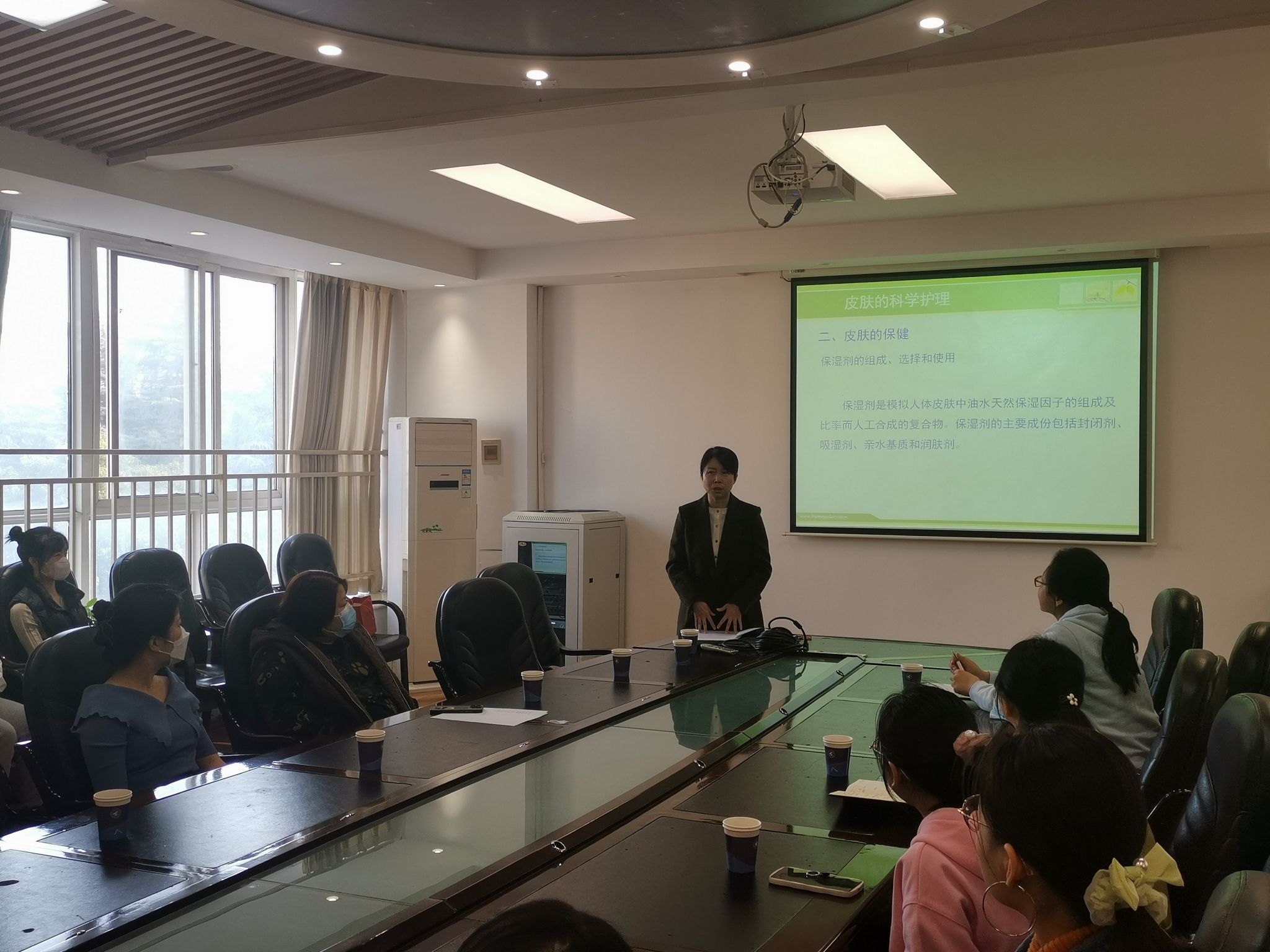 王医生围绕护肤的正确步骤、护肤的误区、皮肤问题治理等几方面,为学院师生普及实用的皮肤知识,并针对具体皮肤问题,提出有针对性的护肤方案。学院师生积极响应,讲座现场气氛活跃。