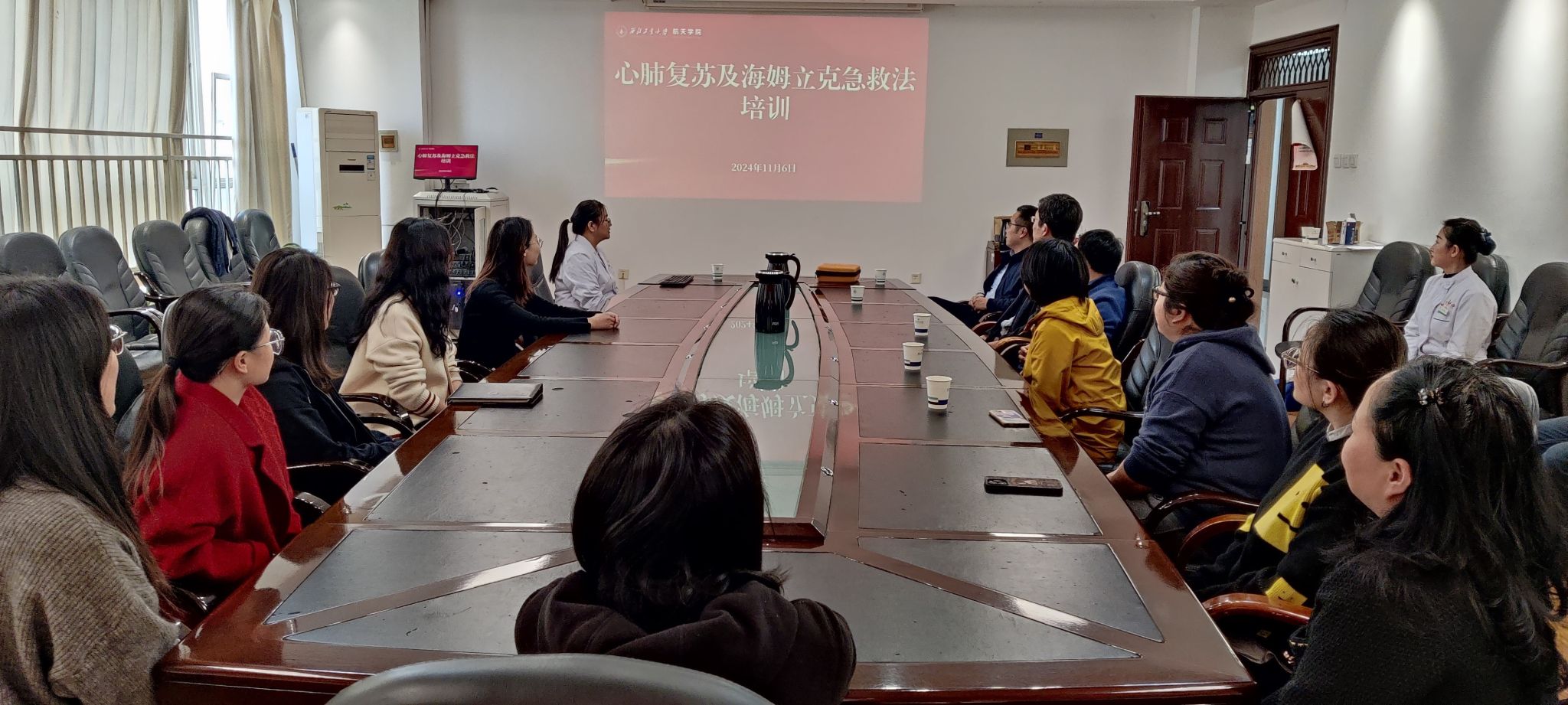 为进一步提升教职工的应急救护能力,增强大家在突发事件中的自救互救技能,3003新葡的京集团分工会特邀请校医院汤燕医生、梁乐乐医生、聂佩护士于11月6日下午在学院4号楼413会议室举办了一场心肺复苏及海姆立克急救法培训。此次培训受到了广大教职工的热烈响应和积极参与。培训由学院工会主席校金友主持。