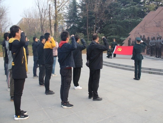 参观完毕后,两校师生党员代表在鲜艳的党旗和革命前辈雕像下,重温入党誓词。铿锵有力的声音久久回荡在训练场上,提醒大家不忘初心,筑牢信仰之基、补足精神之钙、把稳思想之舵,牢记共产主义崇高理想,永葆对党忠诚。