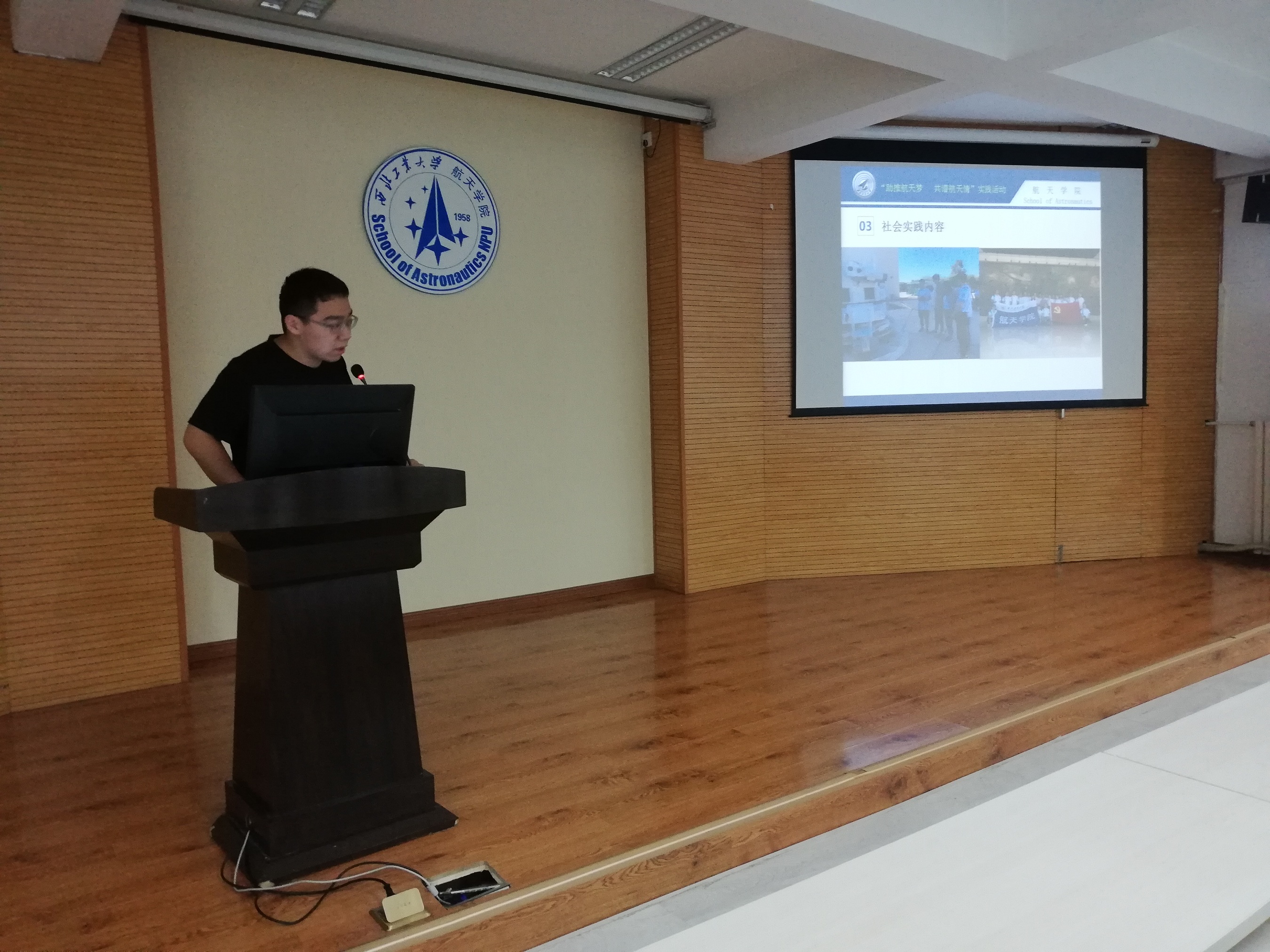 谭明虎老师首先向大家介绍了学校暑期社会实践相关政策及学院研究生暑期实践队伍行程。参加分享会的三个实践队伍分别是:“拨云见日,思路创新”赴深圳社会实践队、“励志启航,逐梦未来”赴北京暑期社会实践团、“助推航天梦,共谱航天情”赴酒泉实践队。三位分享人都结合自身队伍的实践内容进行了精彩分享。