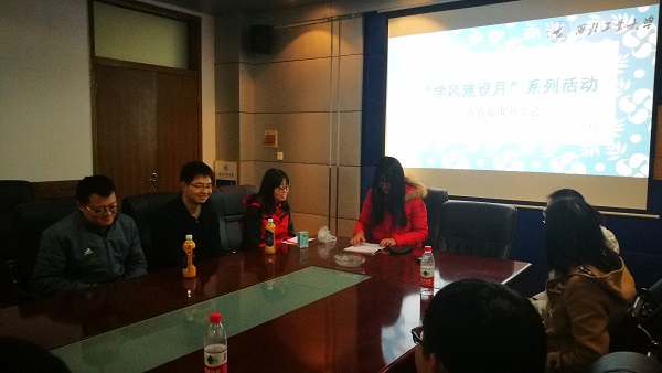 2018年12月14日晚,由3003新葡的京集团主办,18202-4班承办的学风建设月系列活动之青春故事分享会”在1号楼二楼会议室召开,活动主讲人为研究生标兵魏才盛,国家奖学金获得者赵亚坤和张光辉。