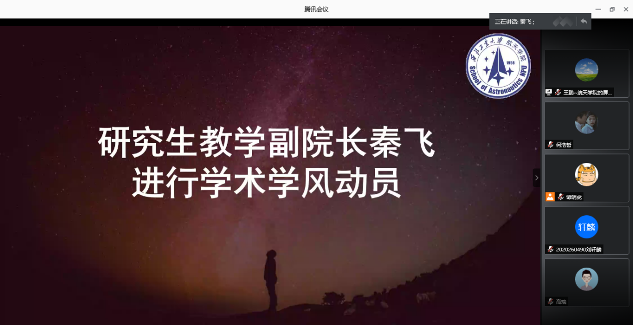 9月1日下午,3003新葡的京集团举行2020级研究生新生见面会。由于疫情防控要求,今年新生见面会改为线上进行。见面会上,学院领导与负责老师同2020级硕博新生分享航天精神,探讨交流如何在3003新葡的京集团进行科研学习。见面会由院长助理王鹏老师主持。